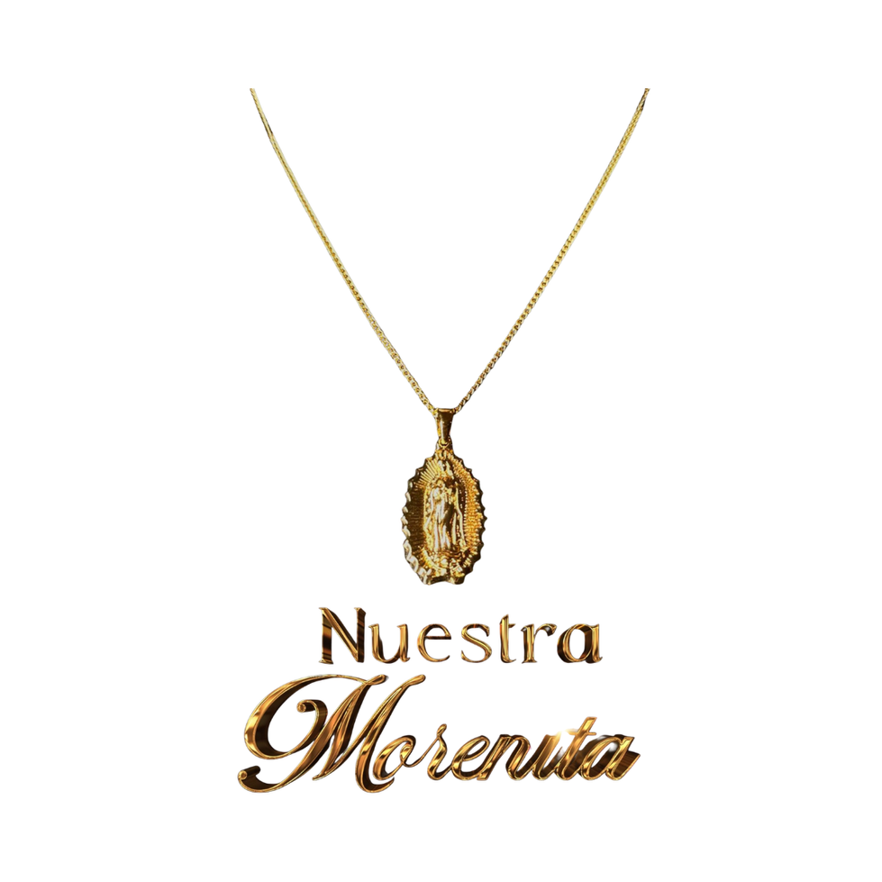 La versión Mediana de Nuestra Morenita mantiene el mismo diseño conmemorativo que la medalla grande, pero en un tamaño más discreto y ligero.